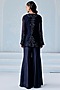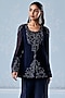 Seema Thukral presents an exquisite navy blue jacket crafted in habutai silk base, adorned with delicate embellishments that lend a soft, ethereal charm. It is paired with georgette flared pants, creating a graceful and contemporary silhouette. Style it with pearl earrings, soft curls, and sleek stilettos for an elegant look at festive celebrations, sangeet nights, or pre-wedding ceremonies.