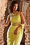 Seema Thukral features a mesmerizing Neon Green Draped Jumpsuit that captivates with its elegance. The eye-catching piece is crafted in net and organza with sequins, glass beads, beads and crystals hand embellishment. It is paired with a georgette embellished draped pallu. Style it with statement jewellery and heels for a special occasion or an evening party, showcasing style and sophistication.
