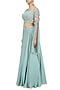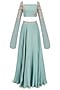 Ocean Green Embroidered Off Shoulder Croptop with Circular Skirt