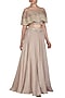 Featuring a smokey grey blouse in cotton silk and chanderi base with sequins, pearls, zari, glass beads and beads embroidered frills. It is paired with a matching skirt.