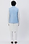 Featuring a powder blue bundi jacket in silk base with zardosi embroidered buttons and floral print. It is paired with a cotton silk pocket square. Perfect wear for a festive occasion or pooja ceremony.