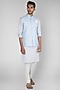 Featuring a sky blue bundi jacket in dupion silk base with shaded silver and zardosi embroidery. Perfect for a festive occasion or pooja ceremony.