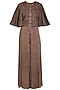 Featuring a mud colored overlaying cape in satin and modal base with anchor thread hand embroidery. It is paired with matching top and palazzo pants.
