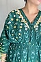 Featuring an emerald green kimono dress in cotton ikat base with mirror embroidery.