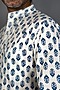 Featuring a white shirt in cotton mulmul base with indigo hand block motif print. This contains only one piece.