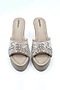 Featuring a pair of cement grey block heels in artificial leather base with embedded micro sequins, metallic thread and foil embroidery. It has 4-inch heels and an antibacterial cushioning. Designed for both style and comfort, these heels add a touch of elegance to any outfit, making them perfect for special occasions and weddings.