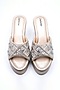 Champagne Gold Artificial Leather Sequins Embroidered Block Heels