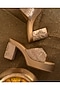 Champagne Gold Artificial Leather Thread Embroidered Block Heels