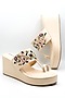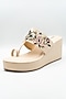 Cream Artificial Leather Thread Embroidered Platform Wedges