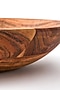 Presenting a brown round serving bowl in a large size. This serving bowl is hand-carved in acacia wood. This earth-friendly bowl is best to serve fruits and salad.