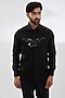 Featuring a black shirt in cotton satin base with dabka embroidery.