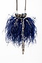 Featuring a blue handcrafted potli in velvet base with feathers, pearls and sequin embellishments. It has a raw silk lining and a silver chain.