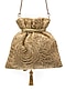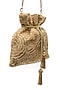 Featuring a gold handcrafted potli in raw silk base with zari and bead work, including tassels detailing. It has a raw silk lining and a silver chain. A perfect companion for festive occasions and evening soirees, this piece exudes sophistication and complements every ensemble effortlessly.