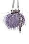 Featuring a lilac handcrafted potli in velvet base with feathers, pearls and sequin embellishments. It has a raw silk lining and a gold chain.