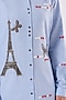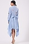Featuring a light blue asymmetrical dress in chambray base with motifs embroidery, front opening and an attached belt.