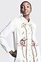 Featuring a white high-low shirt dress in double crepe base with funky motif embroidery, collar, metal snap buttons and side concealed pockets. Accentuate with statement earrings and heels for a casual or office look.