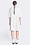 Featuring a white front-open dress in japanese crepe base with distorted check embroidery, concealed placket, fabric buttons and a box pleated back. Accentuate with statement earrings and heels for a casual or office look.
