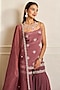 Featuring a mauve pink one-shoulder kurta in organza and georgette base with embroidery. It is paired with embroidered flared sharara pants and a dupatta. Accentuate with statement earrings and heels for a festive occasion.