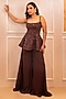 Featuring a mocha brown peplum top in georgette base with chikankari and georgette base with sequins embroidery. It is paired with flared palazzo pants. Accentuate with dangler earrings and heels for a festive occasion.
