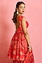 Featuring a red kurta in silk base with print and embroidery. It is paired with printed gharara pants and a dupatta. Accentuate it with dangler earrings and heels for a festive occasion.