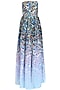Black and light blue butterfly strapless gown