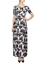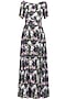 This set features a grey cape in silk crepe base with purple, white and green leaves print all over the front and back along with detailed pleats and separate cutouts on the side front giving a voluminious effect. It has an open and separated knotted tie up printed belt. It is paired with grey tight fitted trouser pants in polyamide and elastane.