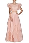 Featuring a baby pink ruffled skirt in silk organza base. It is paired with matching back strap blouse having childana hand embroidery.