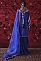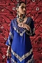 Featuring a blue kurta in pure habutai silk base with dabka, sequins, pearl, thread hand and machine embroidery. It is paired with silk crinkle gharara pants and a pure organza dupatta. Style it with statement jewellery, block heels and an embellished clutch for festive occasions or wedding ceremonies.