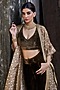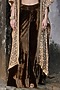 Featuring a deep brown cape in pure silk velvet and tissue base. It is paired with a bustier and flared pants. Accentuate it with statement jewellery and heels for a festive occasion.