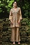 Gold Silk Tissue Hand & Machine Embroidered Kurta Set