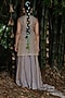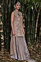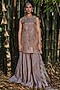 Featuring a grey handcrafted kurta in silk tissue base with dabka, pearl, thread, hand and machine embroidery. It is paired with gharara pants and a banarasi striped dupatta. Style it with statement jewellery, block heels and an embellished clutch for festive occasions or wedding ceremonies.