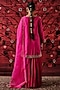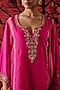 Featuring a pink kurta in pure habutai silk base with dabka, sequins, pearl, thread hand and machine embroidery. It is paired with silk crinkle gharara pants and a pure organza dupatta. Style it with statement jewellery, block heels and an embellished clutch for festive occasions or wedding ceremonies.
