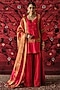 Featuring a red short kurta in silk base with dabka, sequins and cutdana hand embroidery. It is paired with silk gharara pants and a banarasi tissue dupatta. Style it with statement jewellery, block heels and an embellished clutch for festive occasions or wedding ceremonies.
