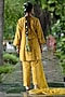 Featuring a yellow kurta in silk tissue base with dabka, pearl, sequins, hand and machine embroidery. It is paired with silk pants and a striped dupatta. Style it with statement jewellery, block heels and an embellished clutch for festive occasions or wedding ceremonies.