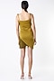Featuring an olive green short dress in scuba base with tulip cut and a bow.