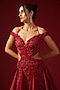 Red Organza Embroidered Off-Shoulder Draped Gown