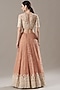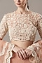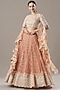 Featuring a nude lehenga in tulle base with embroidery. It is paired with a matching embroidered blouse and an embroidered layered dupatta.