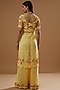 Featuring a yellow tunic in tulle base with 3D floral and sequins embellishment. It is paired with matching layered sharara pants.
