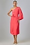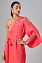 Featuring a pink one-shoulder kaftan dress in cupro base with slit sleeves and hand embellishments. It is paired with a belt. Style it with statement earrings and heels for an after party or evening soiree.