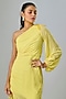 Featuring a yellow one-shoulder ruched dress in cupro and viscose base with applique detail on shoulders. Style it with statement earrings and heels for a beach dress or throw on an overlay for a layered look.