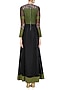 Featuring a black pleated dress in silk organza base with an olive green pleated yoke embroidered with multicolor glass beads work on the sleeves and neckline.