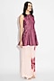 Featuring a dark mauve pink striped tunic in poly chanderi base. Accentuate it with pants, statement earrings and heels for a complete look.