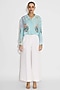 Featuring a frost blue floral crop shirt in bemberg twill base. Accentuate it with pants, statement earrings and heels for a complete look.