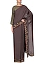 Featuring a grey saree in rayon base with zari and resham embroidery on the border highlighted with beads work. It is paired with olive green blouse in rayon with flared sleeves and resham embroidered small motifs all over.