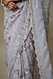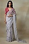 Grey Silk Organza Resham Floral Embroidered Saree Set