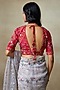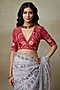 Featuring a grey saree in silk organza base with scalloped detailing, resham, motifs and sequins floral embroidery. It is paired with a chamundi silk blouse having a V-neckline, sequins and beads floral embroidery. Accentuate it with statement jewellery and heels for a bridal look.