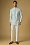 Featuring an aqua kurta in silk chanderi base with threadwork and bead hand embellishments. Style it with pants and mojaris for a festive occasion, cultural event, wedding or sangeet ceremony.