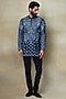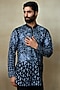 Featuring a black short kurta in silk chanderi base with abstract print, tonal silk resham and pearl hand embroidery. Perfect wear for any festive occasion or ceremonial event.