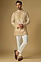 Featuring a gold kurta in silk chanderi base with threadwork and bead hand embellishments. Style it with pants and mojaris for a festive occasion, cultural event, wedding or sangeet ceremony.