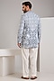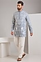 Featuring a grey kurta in georgette base with geometric and floral resham embroidery, including abstract print. Perfect wear for festive ceremonies.
